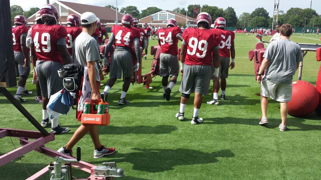 Suspended linebacker Trey DePriest was back with the team and fully participating today after missing a full week due to “violation of team rules.” He wasn’t working with the first unit though, as it looks like he will be forced to earn his spot back. Tana Patrick was ahead of him. In regards to DePriest’s short suspension, Saban said that he did all the necessary things to get back with the team, and now he will be forced to work his way back up the depth chart.