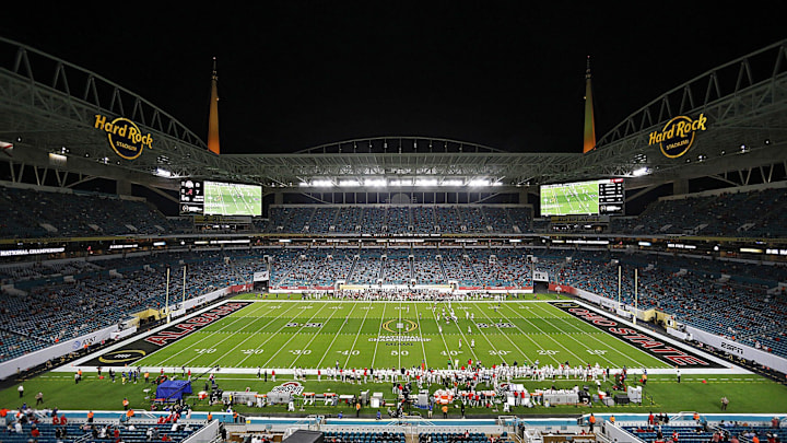 This season's National Championship Game will be in Hard Rock Stadium in Miami Gardens, FL. The Crimson Tide and Ohio State have met in the same setting before. In the 2021 National Championship Game, Alabama beat Ohio State 52-24 to win the 2020 National Championship. If the Sugar Bowl harbinger has merit, could the 2021 game foreshadow National Championship No. 19 for the Crimson Tide?