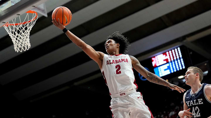 All five of Alabama's guards finished in double figures scoring against Yale. Joining Holloway, Amari Allen, Jalil Bethea, and Latrell Wrightsell all scored 15 points apiece. Houston Mallette added 12, connecting on 4-of-9 from three-point range.