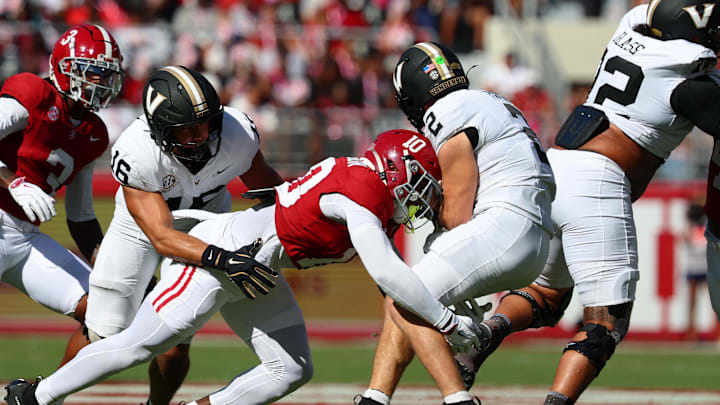 Jefferson made a massive play on Vanderbilt's second drive. With Alabama trailing 7-0 already, the Commodores were inside the redzone looking to build a two-score lead in the first quarter. But Jefferson tackled Pavia on a third-down scramble and ripped the ball away from him in the process to force the game's first takeaway in a key spot.